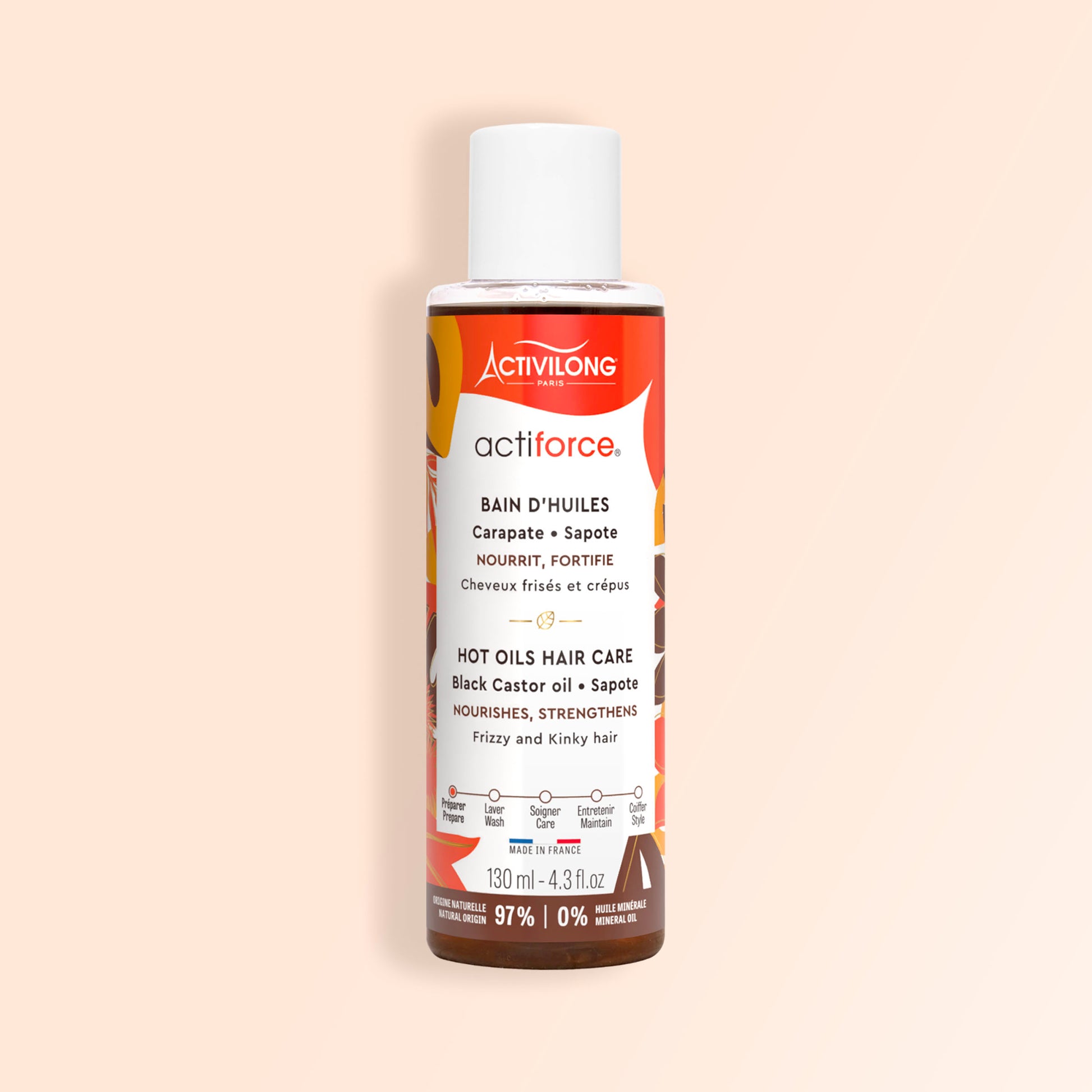 Avec sa formule à base d'huiles végétales pures, dont la sapote et la carapate, le Bain d'huiles Actiforce est parfait pour nourrir et revitaliser les cheveux secs, ternes et abîmés.