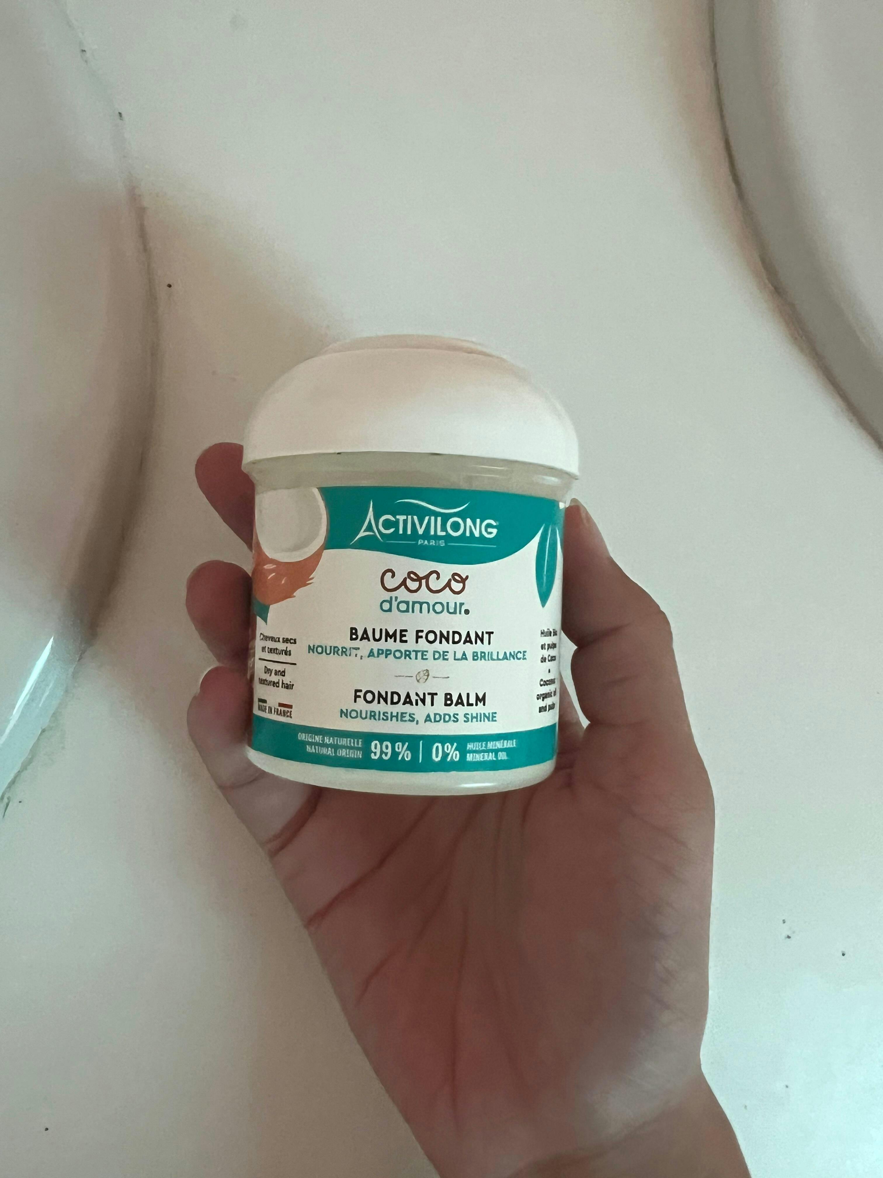 Ce baume fondant au doux parfum de coco permet de sceller avec amour l'hydratation de votre cheveu