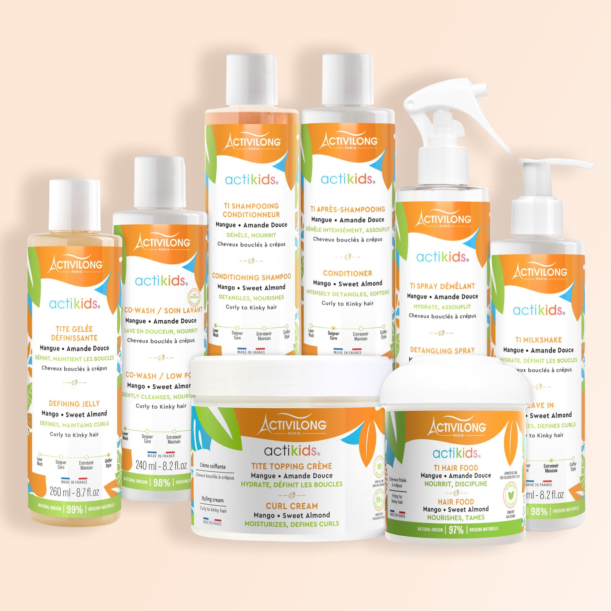 Ti Après-Shampooing : Aqua (Water), Cetearyl Alcohol, Behentrimonium Chloride, Cocos Nucifera (Coconut) Oil, Glycerin, Dipalmoylisopropyl Dimonium Methosulfate, Prunus Amygdalus Dulcis (Sweet Almond) Oil, Mangifera Indica (Mango) Seed Butter, Oleyl Alcohol, Isopropyl Alcohol, Parfum (Fragrance), Glyceryl Caprylate, Potassium Sorbate, Simmondsia Chinensis (Jojoba) Seed Oil, Guar Hydroxypropyltrimonium Chloride, Citric Acid, Panthenol, Hydrolyzed Sweet Almond Protein, Tocopherol, Helianthus Annuus (Sunflower) Seed Oil, Sodium Benzoate, Datem, Sunflower Seed Oil Glycerides, Glycine Soja Oil, Rosmarinus Officinalis (Rosemary) Leaf Extract, Hydrogenated Palm Glycerides Citrate.