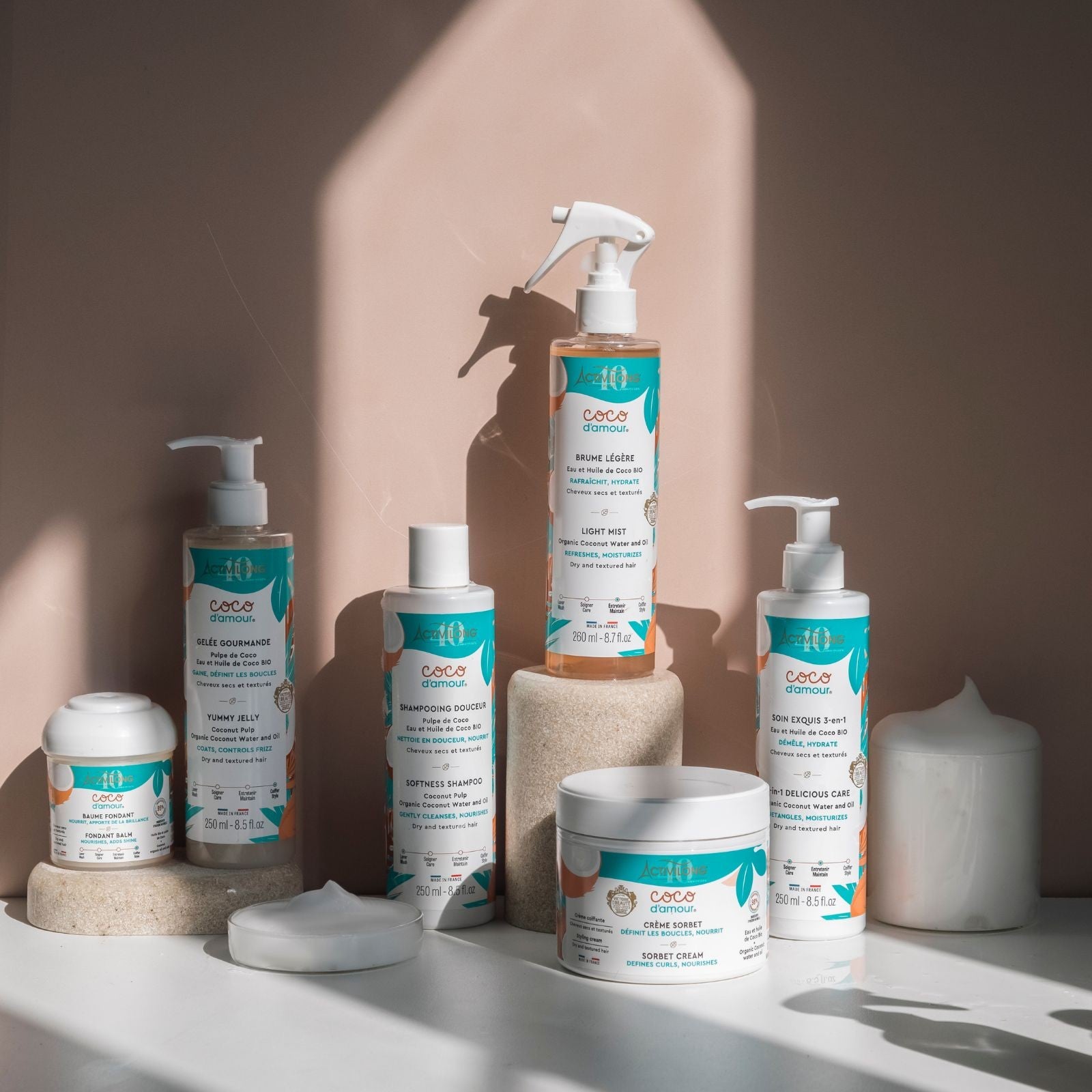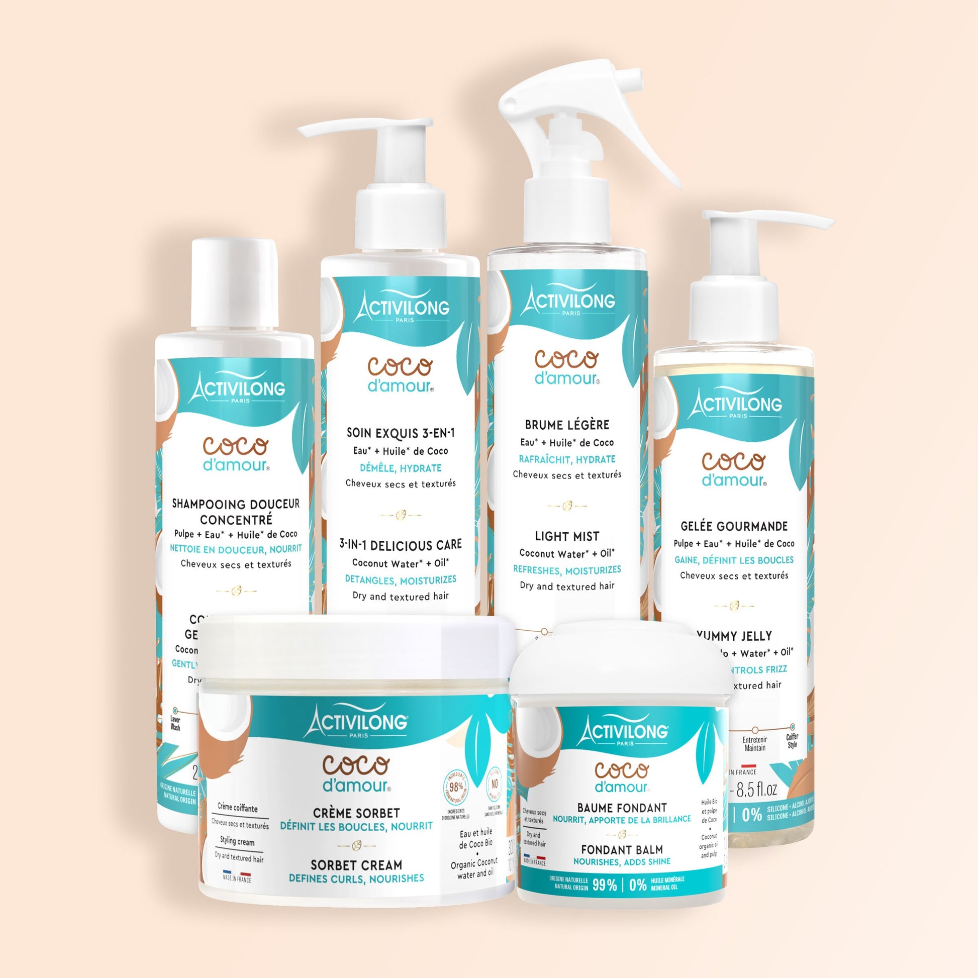 CRÈME SORBET : Aqua (Water), Cocos Nucifera Water*, Cetearyl Alcohol, Cocos Nucifera (Coconut) Oil*, Glycerin, Butyrospermum Parkii (Shea) Butter*, Coconut Alkanes, Isoamyl Laurate, Behentrimonium Methosulfate, Cetearyl Glucoside, Aloe Barbadensis Leaf Juice Powder*, Cetrimonium Chloride, Citral, Citric Acid, Coumarin, Glycine, Soja Oil, Linalool, Parfum (Fragrance), Potassium Sorbate, Sodium Benzoate, Tocopherol.