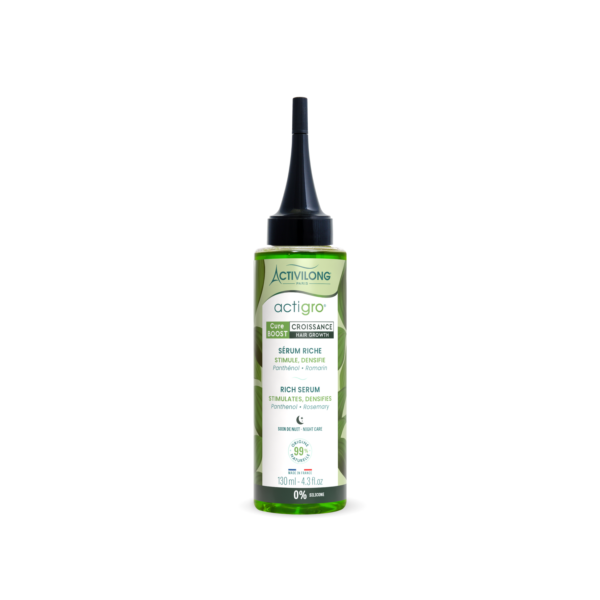 Procédez à une cure de 2 mois : appliquez 1 soir sur 2 le sérum sur le cuir chevelu, raie par raie, en le massant. Le Sérum Riche Actigro réduit les pellicules.  Ne pas rincer.